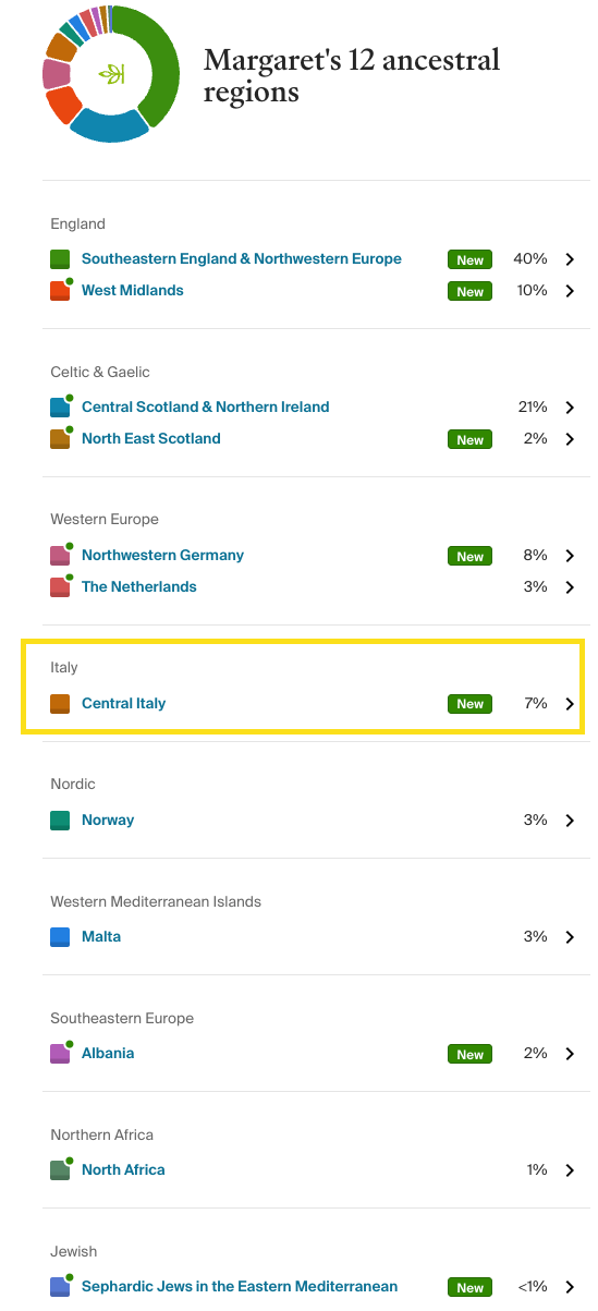 "ITALY? Ha! I am not from Italy! Something seems off here", I exclaimed in my brain as Anne was peacefully and quietly snoring. A little smirk on my face as I navigated to the Matches tab, still wondering if maybe my Dad had other children I didn't know about (seemed quite possible). Or if my dream had come true and Angela Lansbury was maybe somehow my grandmother. Not at all living in reality at 3am.